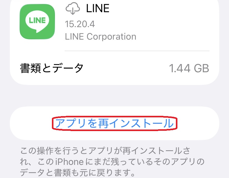 「アプリを再インストール」をタップすれば完了です。