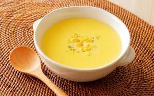 栄養価が高く消化がよいかぼちゃをミキサーを使わずポタージュに。かすかに香るスパイスの香りが食欲をそそる! ポタージュは、直接味わえる持ち手付きカップがおすすめ。カップに入れて、ごくごく飲みたい。