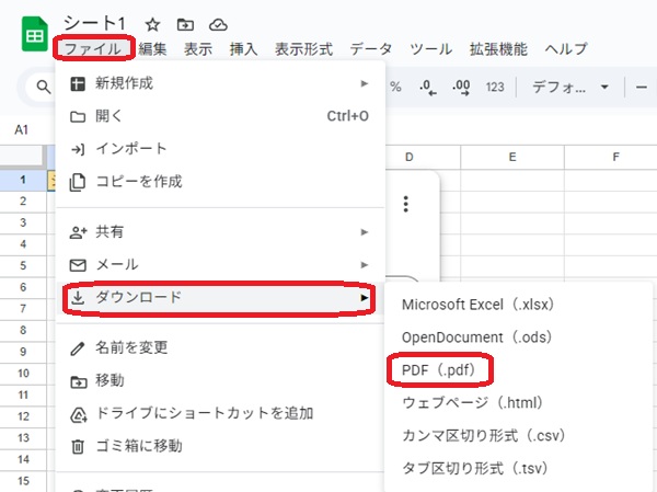 Google スプレッドシートは、表計算ソフト以外のファイル形式に変換もできます。一例として、PDFへの変換方法を確認しましょう。