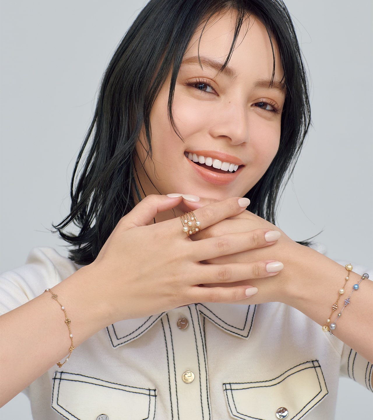 〝真実の愛〟を花言葉にもつ、わすれな草をメインモチーフにした繊細で可憐なコレクション「フォゲット ミー ノット」。幸運を象徴する四つ葉のクローバーのモチーフや、包容力や寛容さを体現するマザーオブパールをあしらったアイテムもあるなど、愛とエレガントさをコレクション全体で表現。身につけると自然と心もほぐれ、優しい気持ちにさせてくれる。