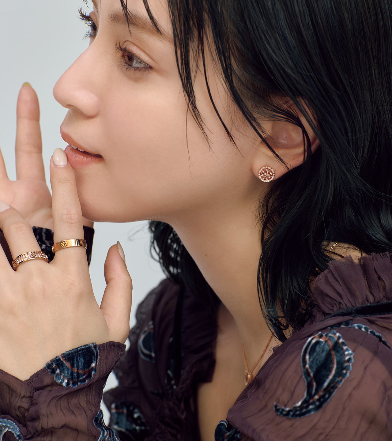 ブランドロゴの〝ダブルT〟にインスパイアされた、まさに〝トリー バーチ〟の「アイコン」としての存在感を放つコレクション。シンメトリーが描く力強さとバランスのとれた美しさ、そしてタイムレスなデザインが、私たちの毎日にしなやかに寄り添う。コレクションを重ねづけしても自然な華やぎとしておしゃれに決まるのもうれしい。