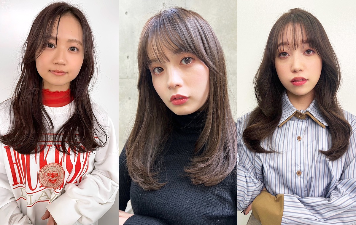 カットは顔まわりにレイヤーを入れ、前髪を長めにすることで大人っぽく。内側は少し短い部分もつくって、2wayバングにしましょう。