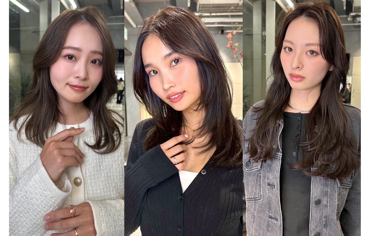 話題のオルチャンヘアの特徴を取り入れたスタイル。顔周りにレイヤーを入れて後ろ向きに流し、ひし形のくびれシルエットをつくる「エギョモリ」風。部分的(顔まわり〜トップ)なレイヤーなので、レイヤー初心者でもチャレンジしやすくて万人ウケも間違いなしです。顔周りに動きがあるため小顔効果があるのもうれしいポイント。