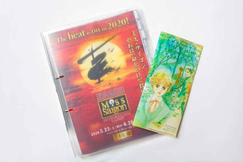 自分のパートの楽譜をファイルしてあるものと、萩尾望都イラストのチケットケース。「昨年行われた『ポーの一族展』のオープニングイベントで萩尾先生と対談させていただいたんですよ。その時にグッズをいろいろ買いまして。このチケットケースは『トーマの心臓』のイラストで、このキレイな色合いにひと目ボレして迷わず購入。封筒やチケットを入れるのにぴったりなんです」