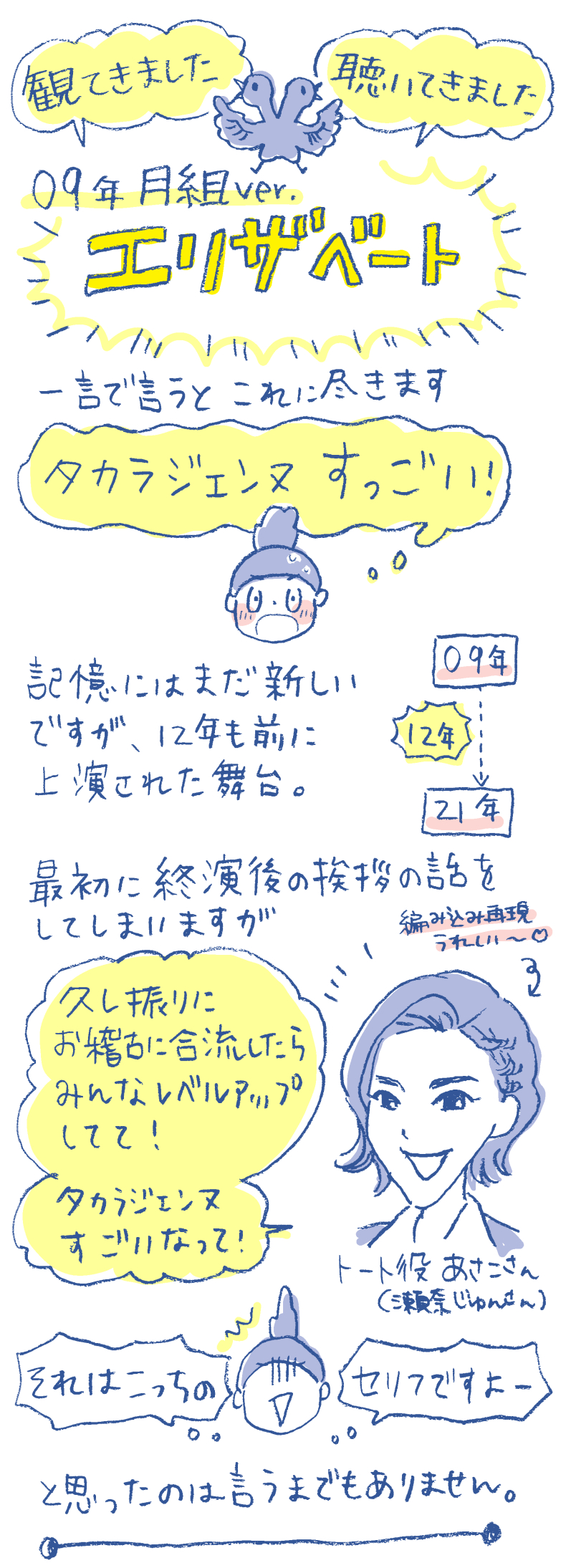 (トート:望海風斗、エリザベート:〈ACT1〉夢咲ねね・〈ACT2〉明日海りお、フランツ・ヨーゼフ:鳳真由、ルイジ・ルキーニ:宇月颯、ルドルフ:澄輝さやと)
