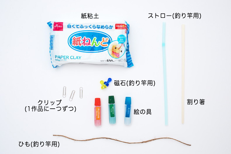 紙粘土が完全に乾いたら、親子で魚釣りをして遊びましょう。