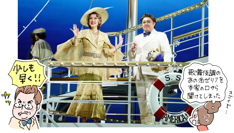 「エニシング・ゴーズ」=「なんでもあり」。1934年にブロードウェイで初演されトニー賞3部門を獲得したことのある傑作で、今回日本では8年ぶりとなる公演。本来ならば8月1日が開幕の予定でしたが緊急事態宣言の影響で一部公演が中止になり、8月11日に待望の初日を迎えました! 宝塚歌劇団元星組トップスターの紅ゆずるさんの、退団後初ミュージカルです。