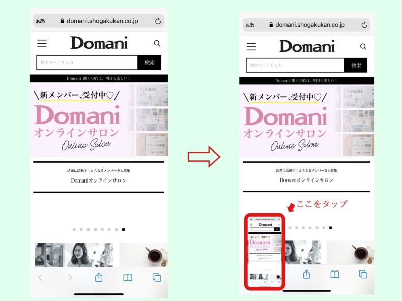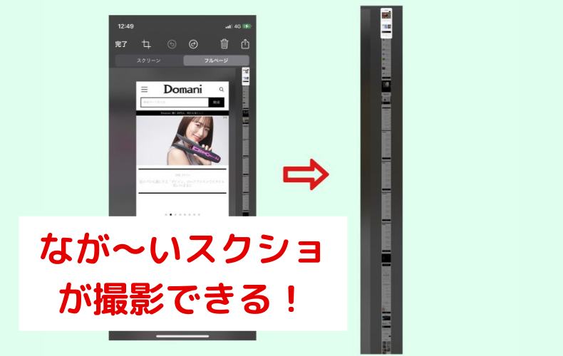 切り離して比較してみるとこのように。一般的にはひとつのスクリーンの保存でしたが、フルページにすることでWEBページを長く保存することができるんです。読みたい記事をもう一度読み返したり、ご自身の端末に保存できるのは嬉しい機能です。この画像は【写真】には保存されないのが要注意ポイント!