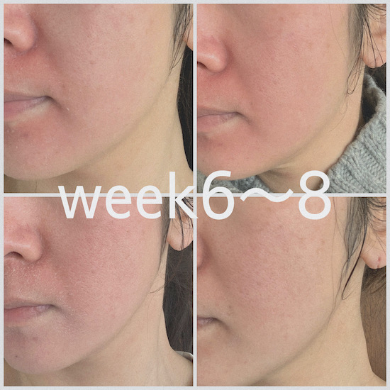 6週間も経つと肌に耐性ができてくるのか、以前ほどは皮むけしなくなりました。医師の指導のもと、トレチノインの割合を増やして様子を見ることに。赤みはほぼなくなってきましたが、トレチノインの量を増やすと再び皮むけが始まりました。