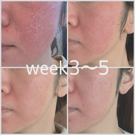 このあたりから「皮むけ後はきれいな肌が待っている…!」と思えるようになってきて、徐々に気持ちも前向きに。赤みが引いてきて、洗顔後の肌に改善の兆しが見えてきた…?と思えたことも理由のひとつです。