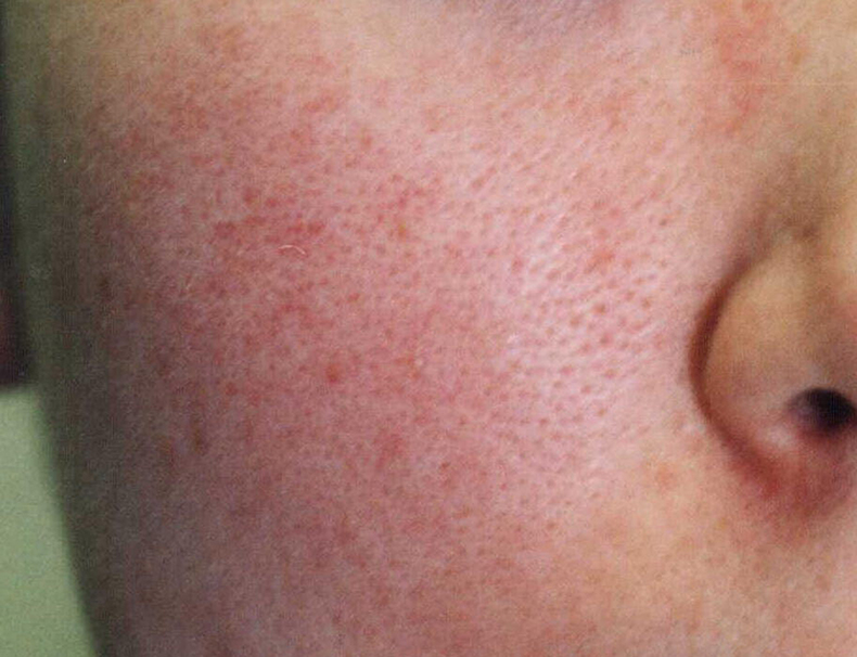 直径1cm以下の赤いブツブツで、内部に白や黄色の膿を含んでいる場合や、痛みをともなう場合もあります。赤ニキビと症状が似ているため間違いやすいですが、こちらは黄色ブドウ球菌などの細菌による感染症のため、ニキビの治療薬では効果がありません。毛抜きやカミソリを使ってムダ毛処理をした後に起こりやすくなります。