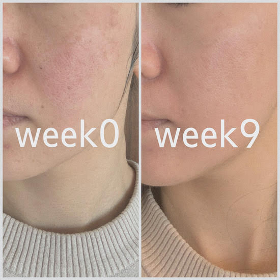 開始前と比較するとシミと毛穴、ニキビ跡が目立たなくなったように思います!あくまでも私の場合ですが、今まで経験したどの化粧品や美容医療よりも格段に効果の違いを実感できました(効果や感じ方には個人差があります)。