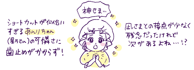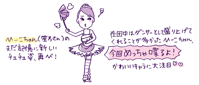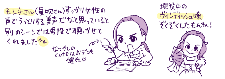 「おらんぴあ」の場面で人形が実体化して風馬さんになる演出があるのですが、なんと衣装が黒とピンクのミニワンピース。意外な姿で存在感がありました。