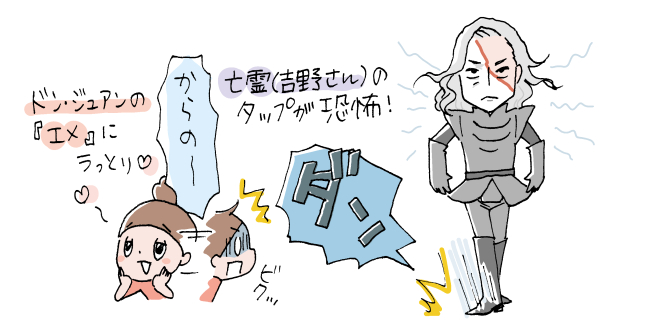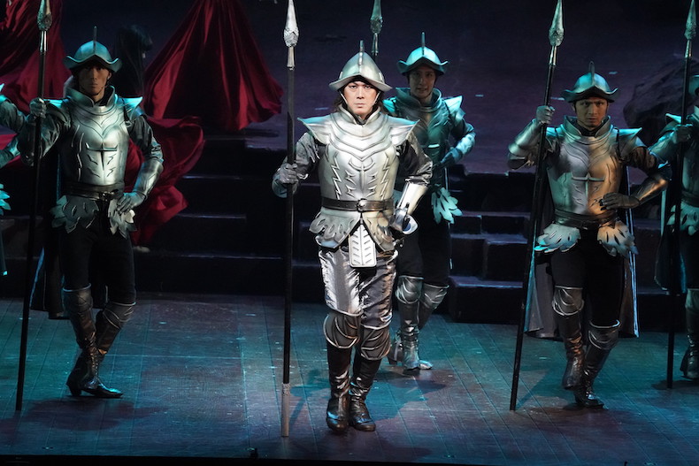劇団四季出身でミュージカルに引っ張りだこの吉野圭吾さんは、存在感たっぷりの騎士団長役。ドン・ジュアンに鎖のように巻きつく「愛が呪いとなる」という言葉は、客席にも不穏な空気を運びます。亡霊になってからの姿がまた迫力があり、舞台の雰囲気をガラッと変えてくれます。ふと吉野さんの経歴を調べたところ、なんと真彩さんの先輩なんですね!