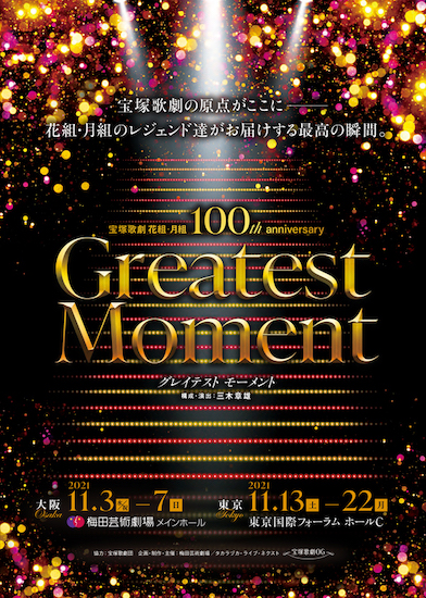 1921年宝塚歌劇の花組・月組が誕生して今年で100年を迎えます。この度、その偉業を讃え、それぞれの時代を彩ったスターが、新たな1ページを華やかに開演いたします。心躍った懐かしいあの歌やあのシーンを、華麗なるメンバーによる様々なヴァージョンでお届けするとともに、これまでの伝統を紡いだ絆を大切に、更なる未来へともにスタートいたします。伝説のスターがお送りするGreatest Moment(最高の瞬間)を今、あなたに…。