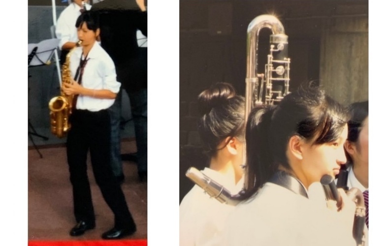 ▲中学時代(写真左)はアルトサックス、高校時代(写真右)テナーサックスのほかバスクラリネットとコントラバスクラリネットを担当していたそう。