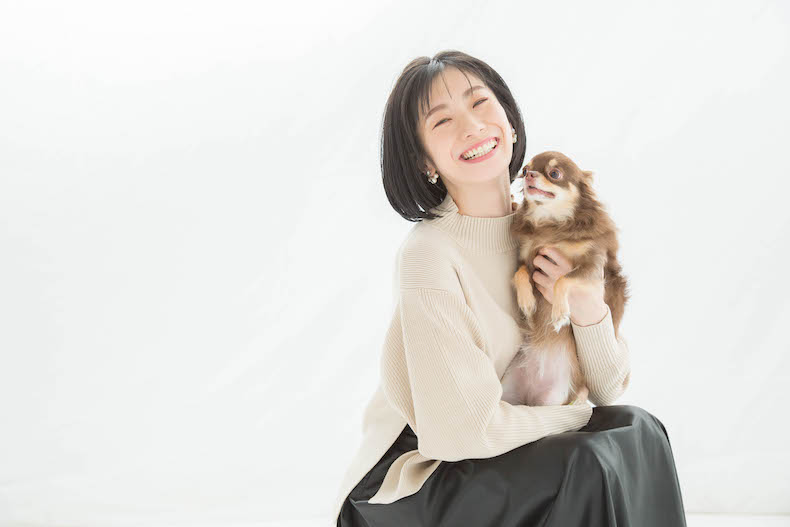 クールな色気を漂わせながらもどこか柔らかさをまとった瀬戸かずやさんからご紹介いただいたのは、瀬戸さんよりひと足先に宝塚歌劇団を退団された芽吹幸奈(めぶき・ゆきな)さん。瀬戸さんと同じ、花組で90期だった実力派の娘役でした。そしてなんと、この連載初の管理職(組長、副組長)経験者! 取材日には、愛犬のとろみちゃんも一緒に来てくれました♡