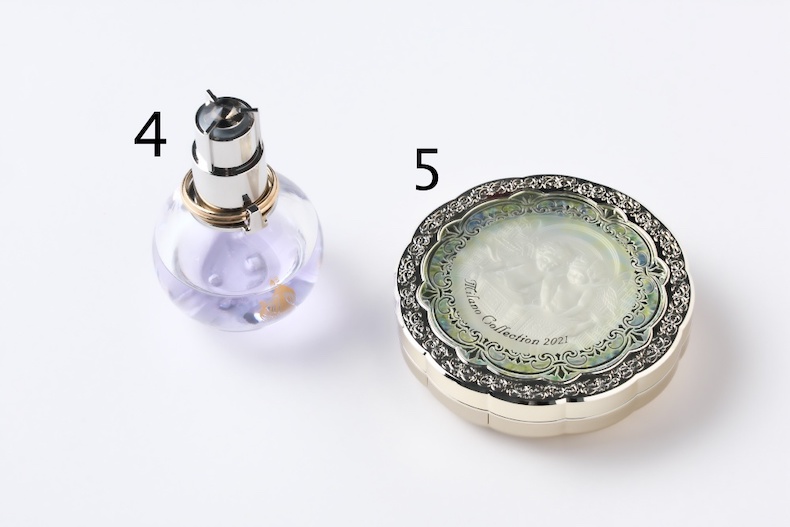 「毎年購入しているミラノコレクション。私はファンデーションを使わず、下地をつけた上にこちらを使っています。今はマスク生活なのであまり化粧直しをしませんが、持つようにしています。これは、粉が細かくて肌に透明感が出るような感じがします。タカラヅカのメイクはすごく粉をつかうからこれでは全然足りないのですが、化粧を終えて舞台袖で使っていました。容器もかわいいですよね」