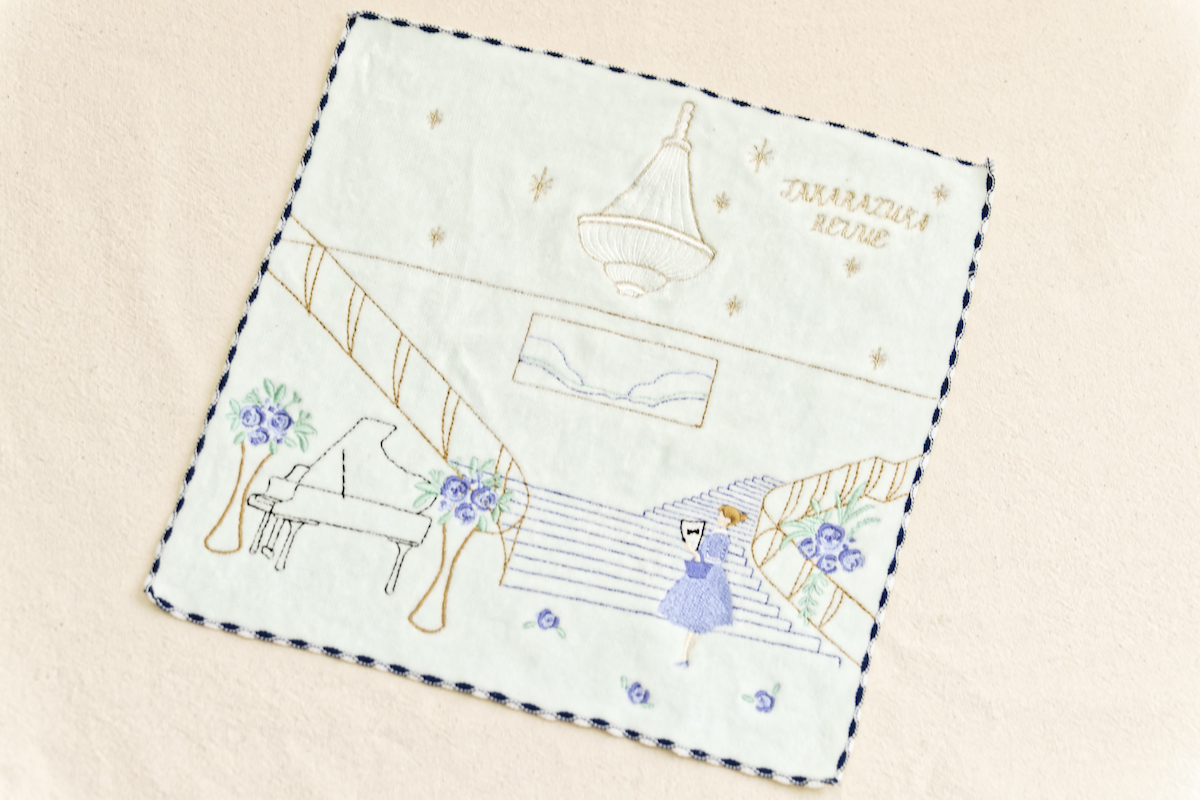 ▲薄いブルーグリーンのようなカラー。宝塚大劇場のロビーの階段があしらわれている。