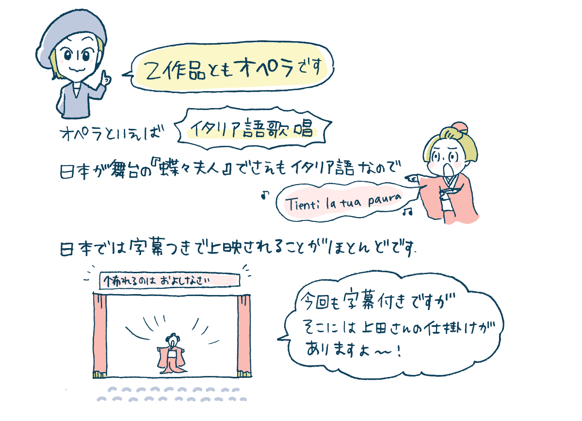 イタリア語の歌詞なので、もちろん字幕付き。通常に翻訳されたものと、上田さんが意訳した関西弁の2種類の字幕が映し出されるそう。