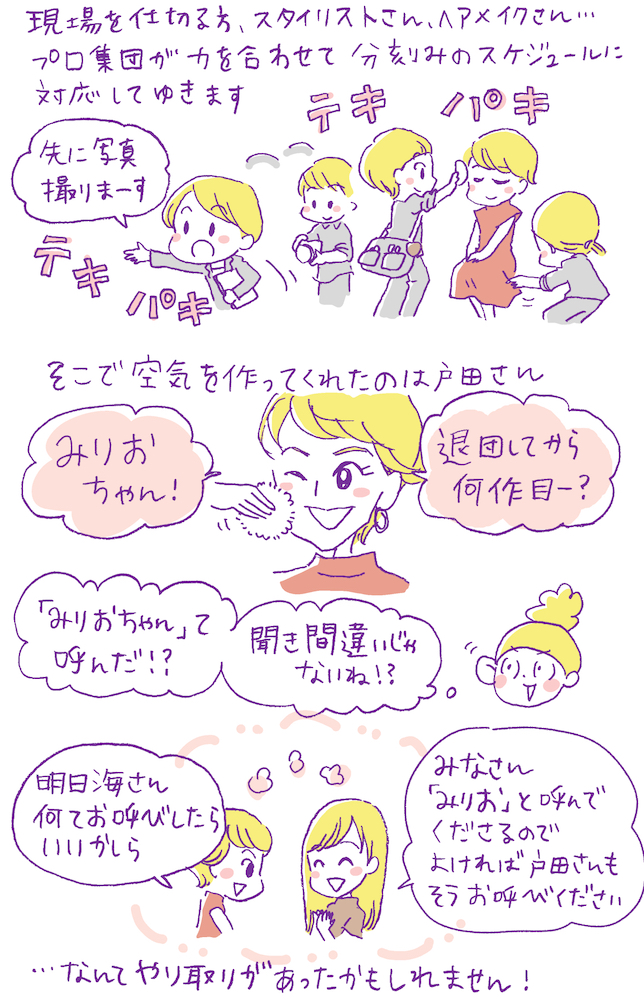 撮影/風香 スタイリング/江島モモ(戸田さん分)、大沼こずえ(明日海さん分) ヘア&メイク/相場広美(MARVEE/戸田さん分)、山下景子(明日海さん分) イラスト/春原弥生 構成・文/淡路裕子