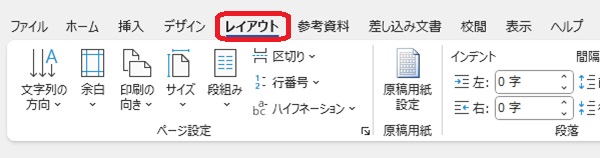 1.「レイアウト」から「ページ設定」を開き、用紙サイズを「封筒」に設定する(縦書きで住所を入力したい封筒の種類を選択)