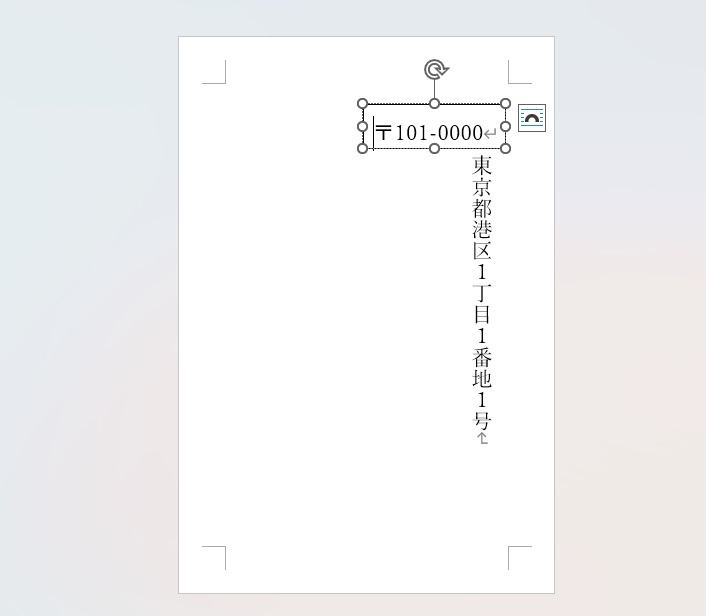 住所入力の前に、文字列の方向を「縦書き」に設定しておきましょう。