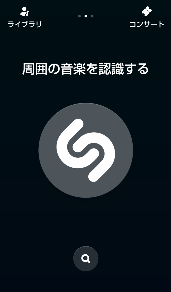 近くで流れている曲を聴きながら、中央の大きなボタンをタップしてください。曲を認識して、歌手や曲名を表示してくれます。