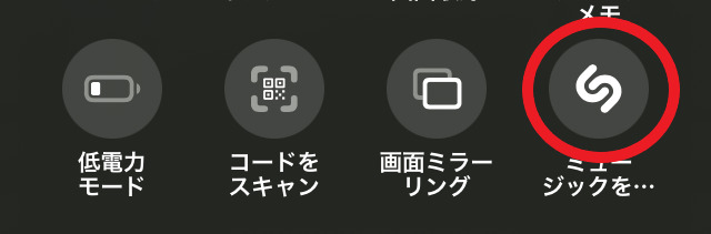 コントロールセンターの「ミュージック認識」マークを長押しすると、Shazamの履歴からも曲を聞けます。