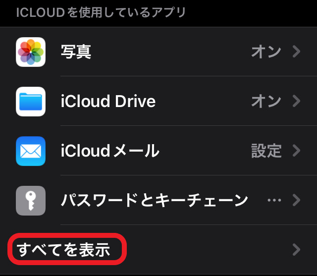 または、「iCloudを使用しているアプリ」リストの一番下にある、「すべてを表示」をタップする場合もあります。
