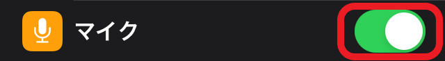「マイク」をタップし、次に音源となるアプリのマイク設定がオンになっているかチェックします。