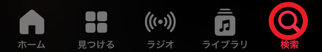 Apple Musicで歌詞検索するには、Apple Musicアプリを開いて、画面一番下の「検索」をタップします。