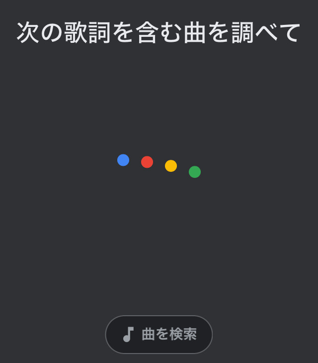 歌詞の中で特徴的なフレーズを話しかけます。思うように曲が見つからなければ、フレーズを長めにしてみるのがおすすめです。「次の歌詞を含む曲を探して」と話しかけると、曲の検索ではなく歌詞検索サイト一覧に飛んでしまいます。