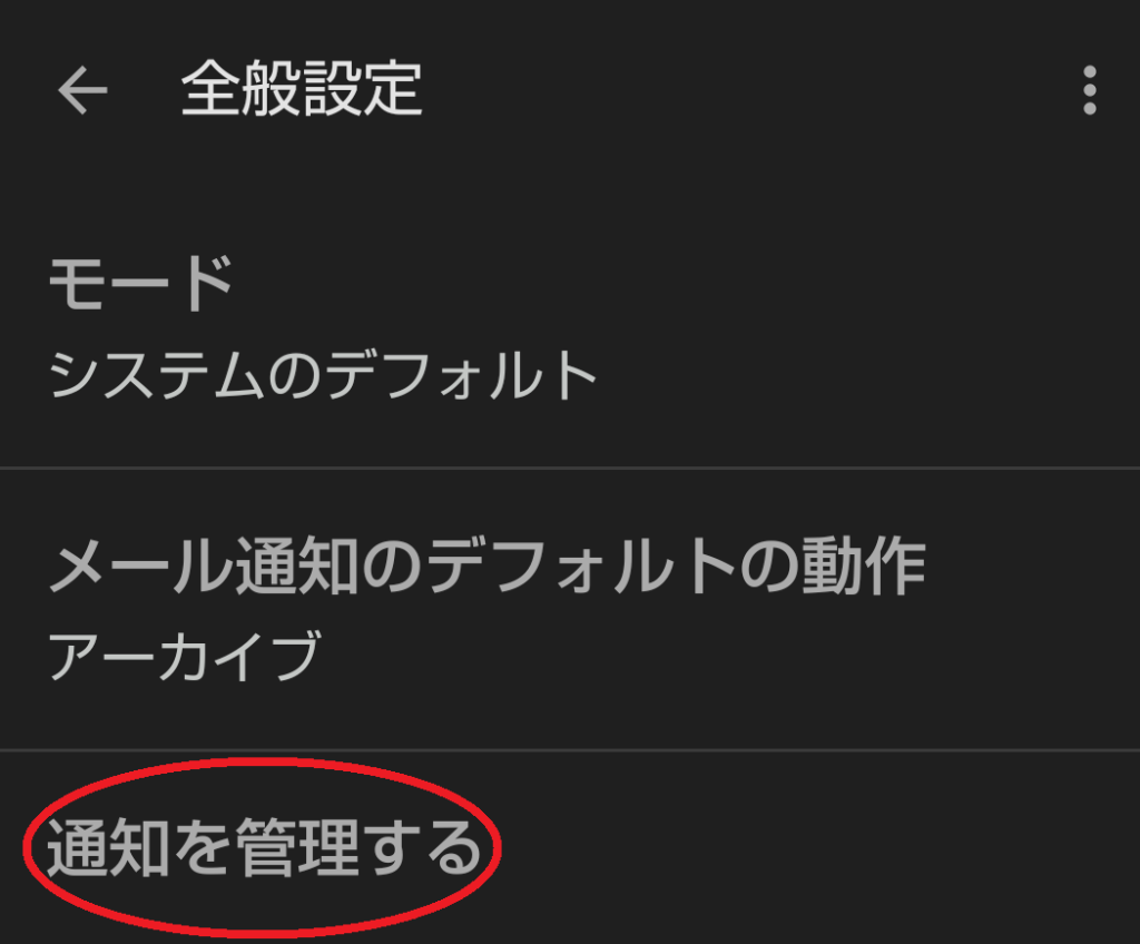 全般設定の画面に移動したら、「通知を管理する」をタップしましょう。すると、以下のような画面になります。