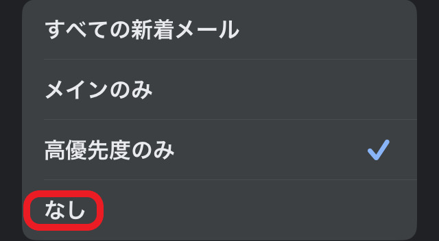 通知レベル「高優先度のみ」は、大事な通知が広告メールなどに埋もれるのを防ぐのにおすすめです。