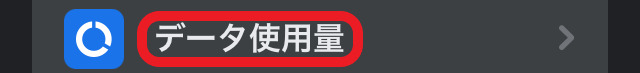 メニューページを下にスクロールして、歯車マークの「設定」をタップし、下の方にある「データ使用量」を選びます。