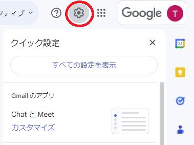 メールの画面に遷移したら、右上の歯車マークをクリックし、「すべての設定を表示」をクリックします。
