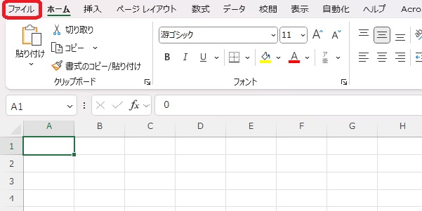 まずは、シート上部の「ファイル」をクリックしましょう。