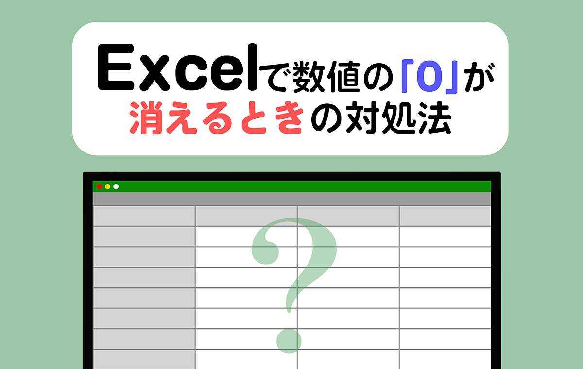 Excelで「0」を入力したとき、数値の0のみでは表示されないケースがあります。0が消えてしまう場合、どのように対処すればよいのでしょうか?主な方法を解説します。