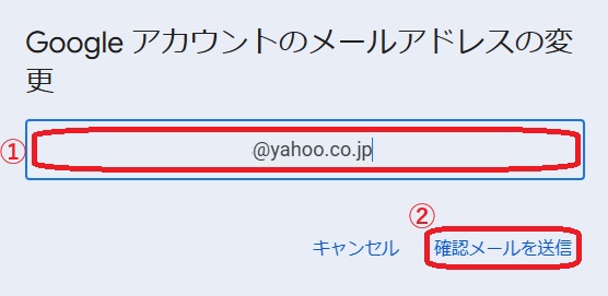 4.「Googleアカウントのメールアドレスの変更」の下に表示されている入力欄に設定したいメールアドレスを入力し、「確認メールを送信」をクリックする。ここではGoogleアカウントにひもづいていないメールアドレス(YahooメールやOutlookなど)を入力する必要があるので注意