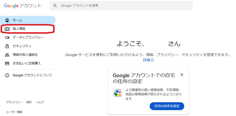 2.左端に表示されているナビゲーションパネルの中から「個人情報」をクリックする