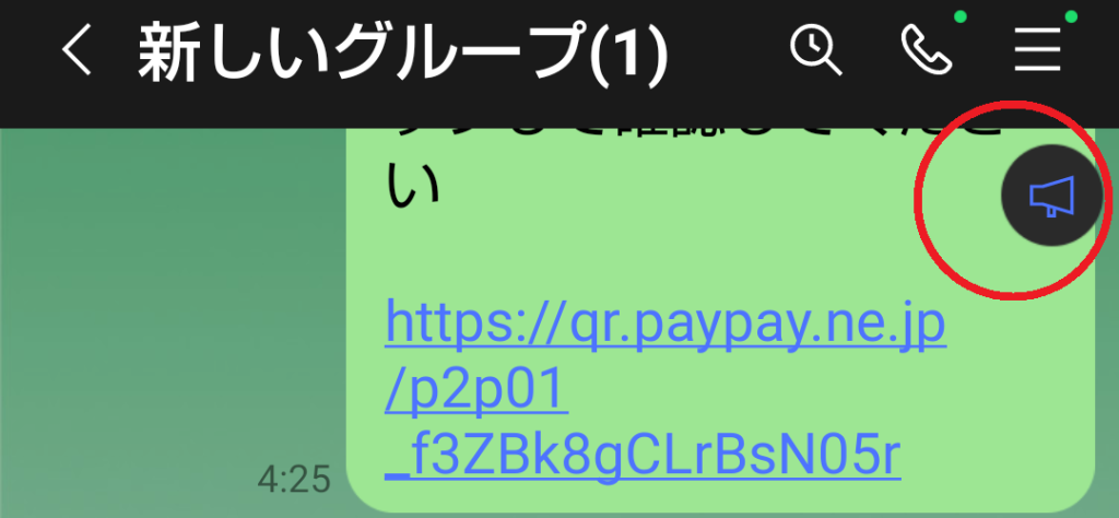 トークルーム上部に表示されているアナウンスのメッセージ右側の「∨」をタップすると、アナウンスしたすべてのメッセージが表示されます。