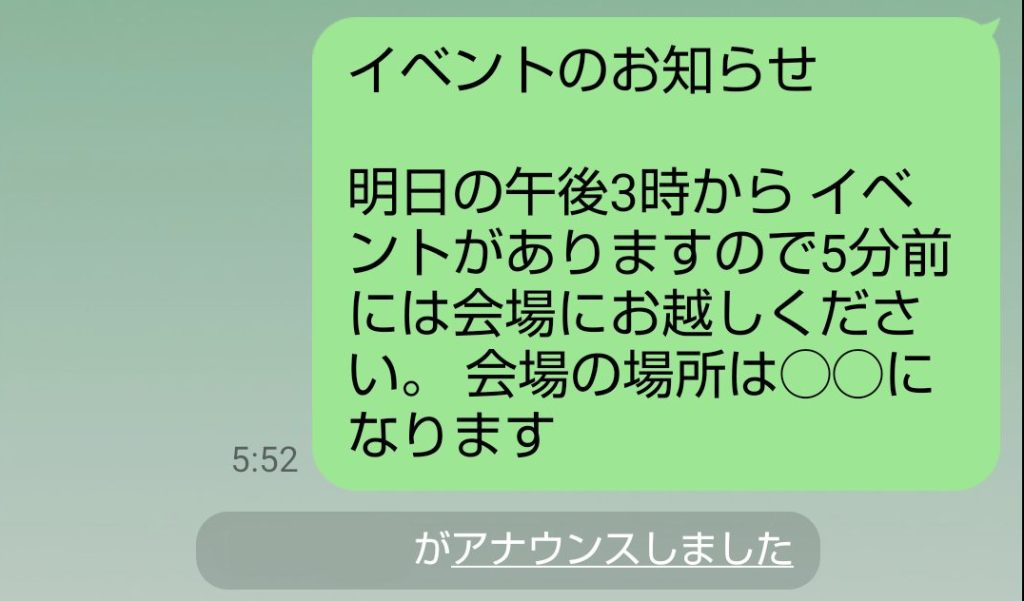 LINEのアナウンス機能は、過去のメッセージをすぐに確認するのに便利な機能です。見落としてはいけない重要なメッセージは、アナウンス機能を使って周知してみましょう。
