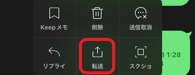上記の方法で得た共有リンクを「Keepメモ」などに保存します。保存ができたら、吹き出し部分をスマホ版LINEアプリの場合は長押し、パソコン版は左クリックしてメニューを開きます。