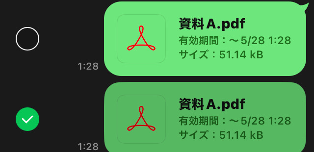 その後、LINEのトークルーム上にPDFが表示されていれば完了です。