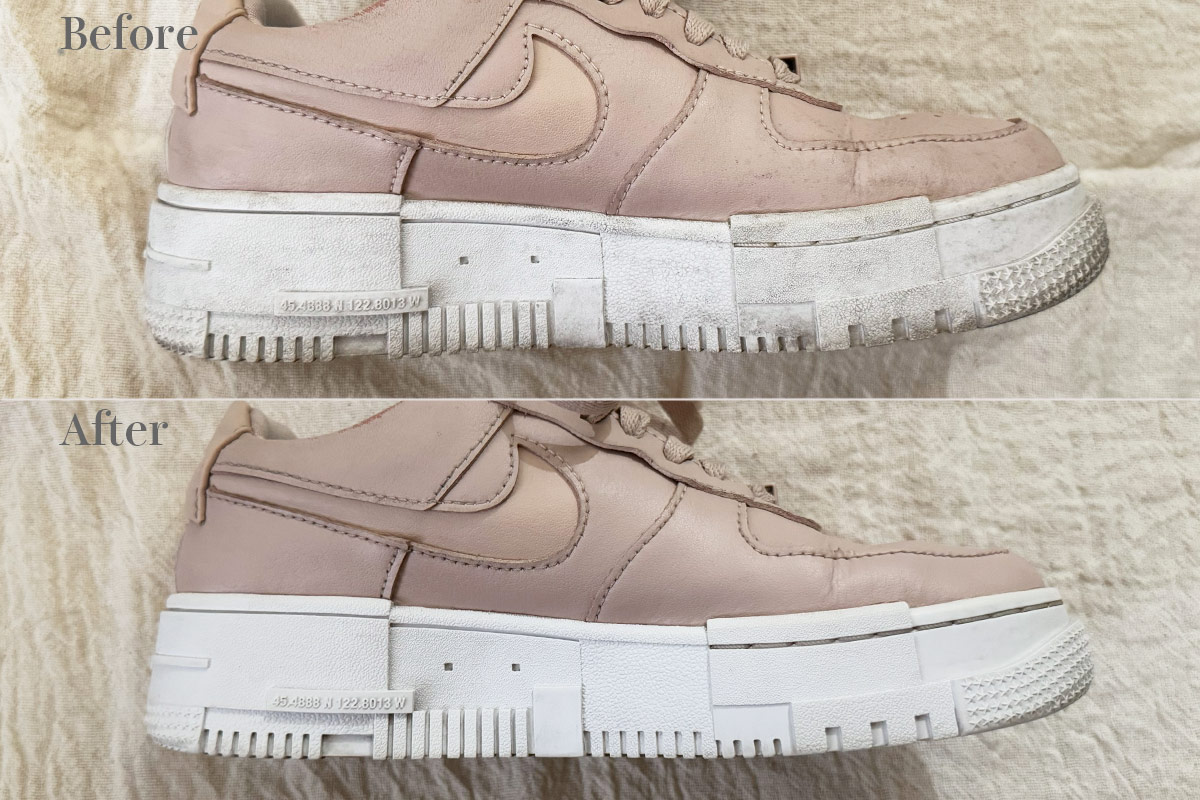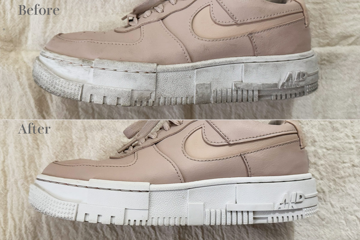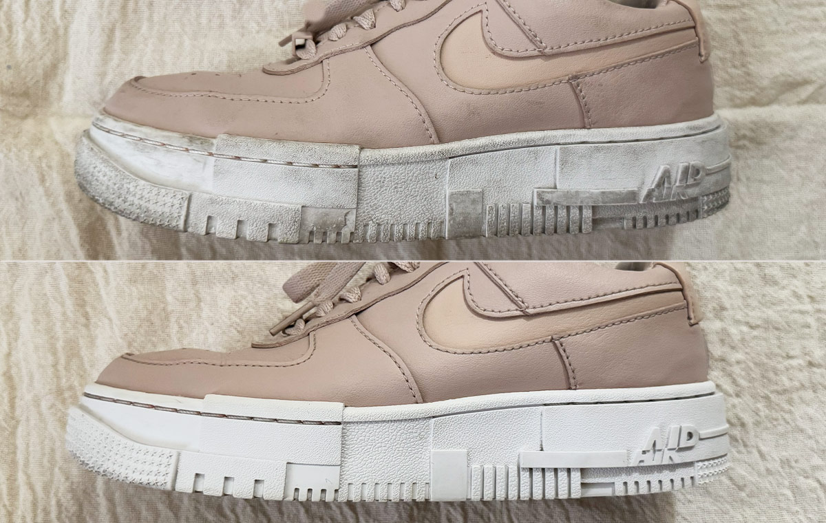 溝に入り込んだ汚れまで落とすのは難しかったものの、かなりきれいになりました! ソールの白さが際立ったことで、スニーカー自体が引き締まったようにさえ見えてきます。ケアってなんて大事なんだ…と改めて感じました。