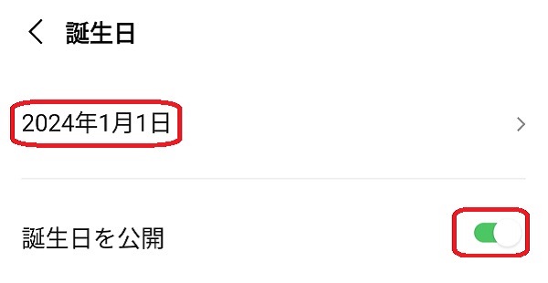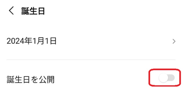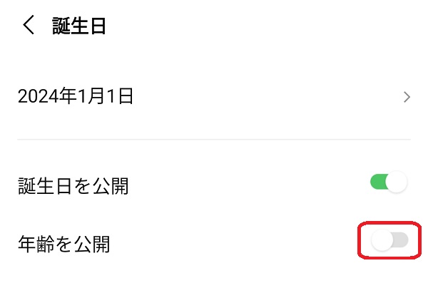 また、「誕生日」の画面で「年齢を公開」をオフにすれば、自分のプロフィールに誕生年のみ表示されなくなります。