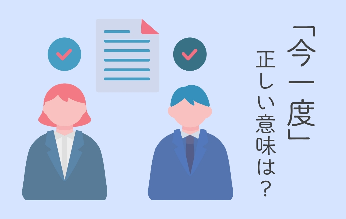 「今一度(いまいちど)」は「もう一度」のかしこまった言い方です。ビジネスシーンでは、以前やってもらったことをもう一度頼むときなどによく使われます。