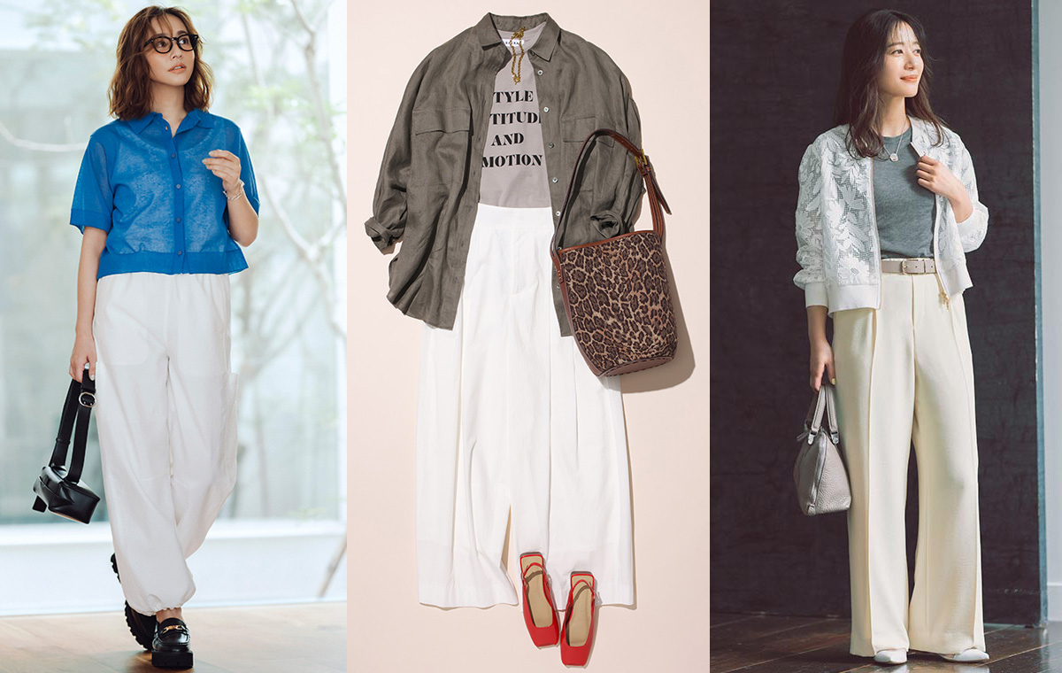 【白パンツ×シャツ・ブラウス】40代におすすめの着こなし