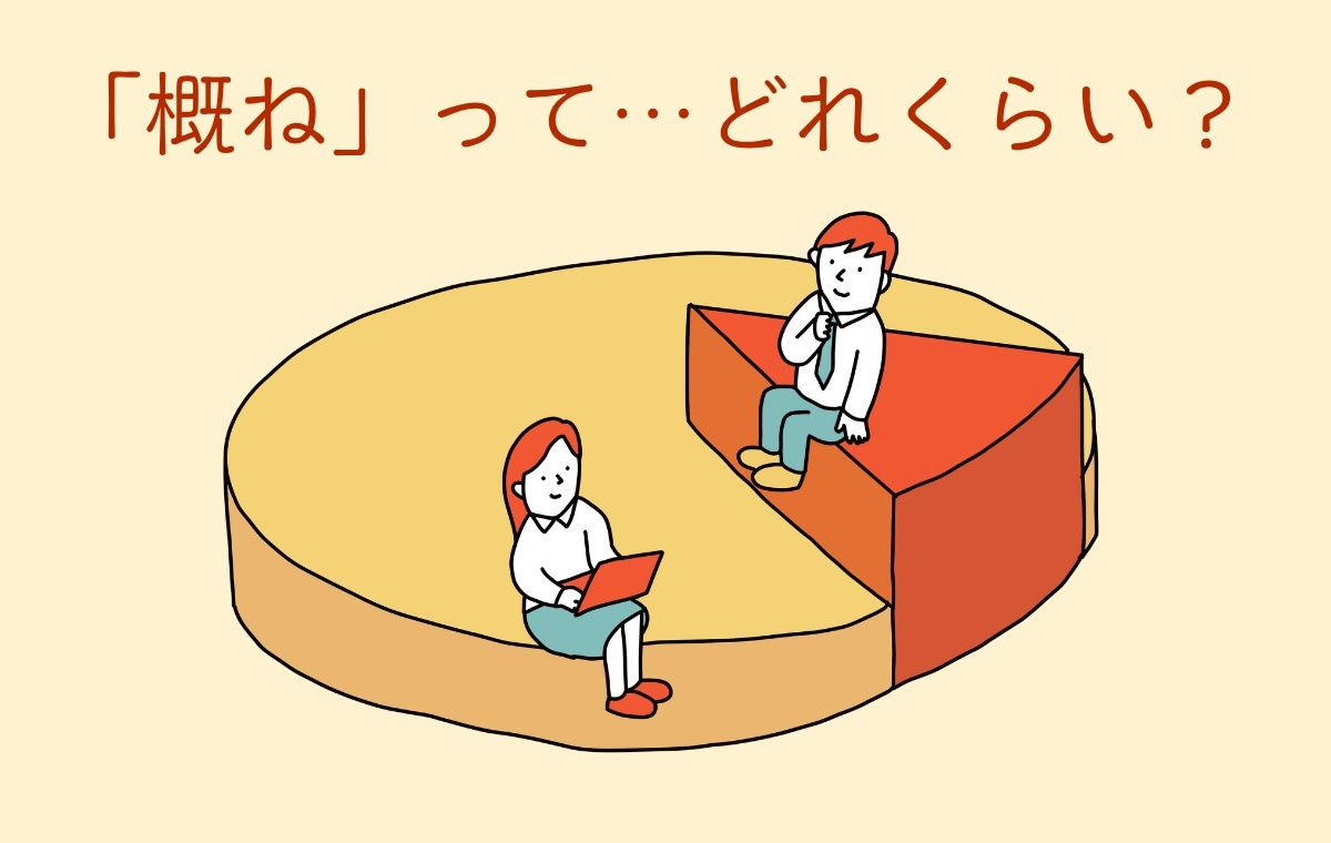 一般的に「概ね」が指すのは8~9割程度だとみなされることがありますが、正確な範囲は定まっていません。このことが原因で話し手と聞き手の認識にずれが起こる可能性もあり、トラブルにならないよう注意が必要な言葉だといえるでしょう。